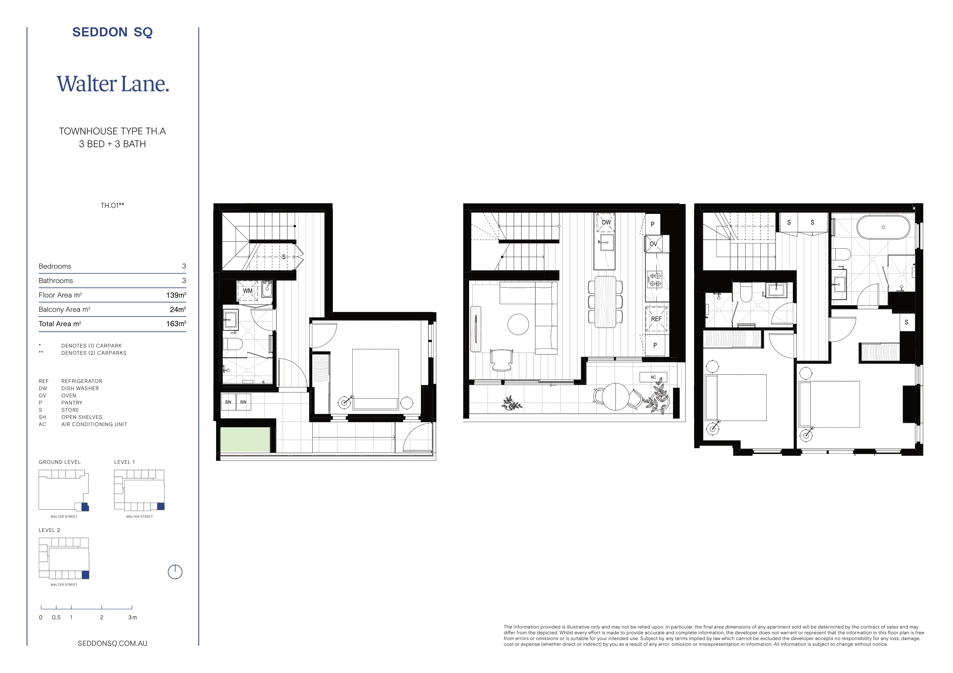 Located within the sought-after Seddon Square development, Townhouse TH01 delivers sophisticated living across three levels with generous proportions and a considered layout. Offering 163m² of total space — including 139m² of internal living and 24m² of private balcony areas — this residence is designed for comfort, privacy, and modern lifestyles.