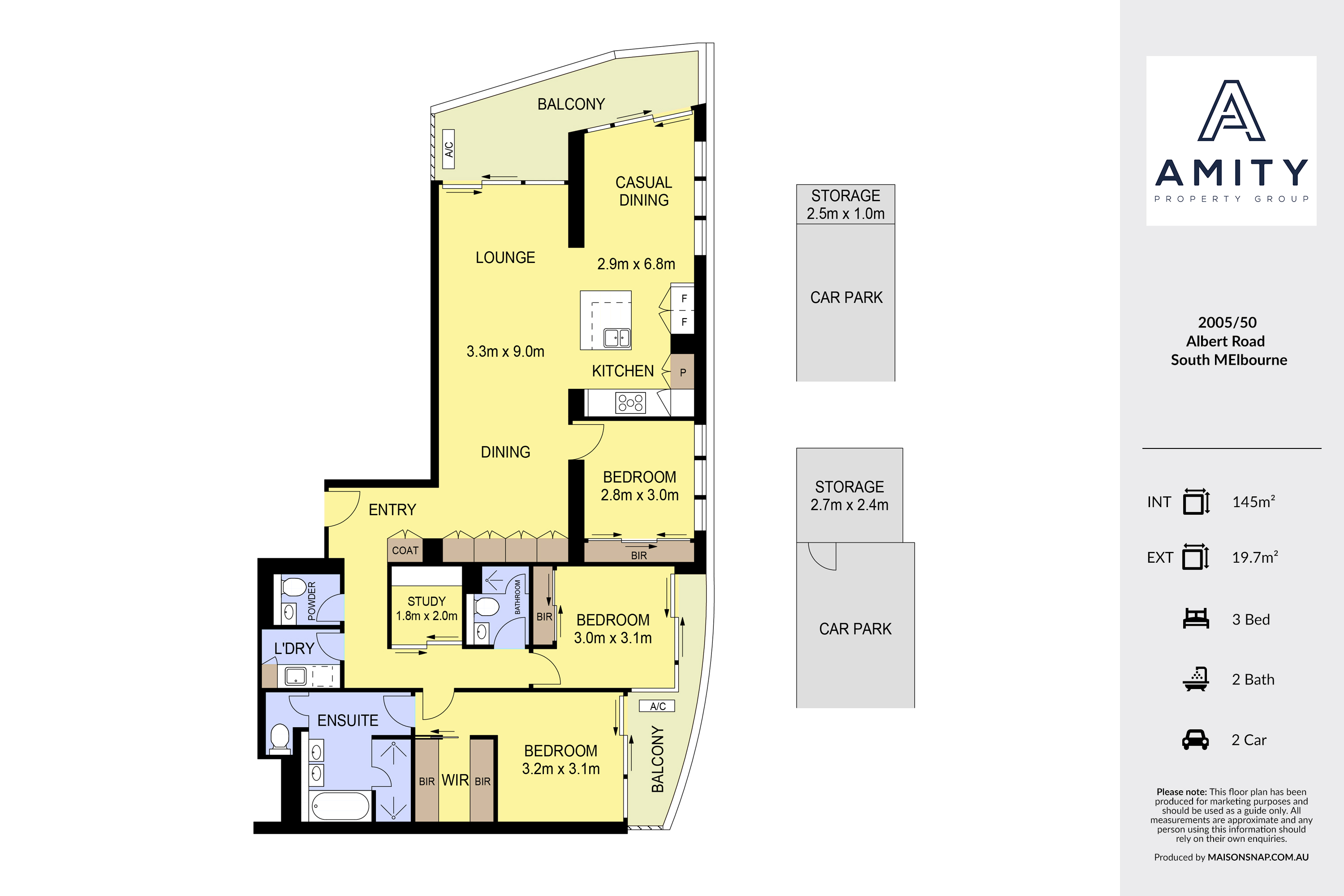 Accommodation includes three well-proportioned bedrooms, including a luxurious main suite with walk-in robe, ensuite and balcony access, complemented by a central bathroom, powder room and dedicated study space.